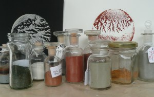 Earth pigments, paint, painting, printmaking, eco colour and visual arts; Canterbury, South Island, New Zealand